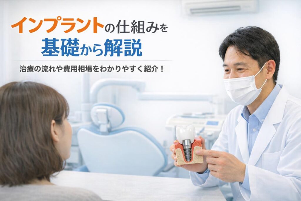 この記事では、インプラントの基本構造や骨と結合する仕組み、最新技術の特徴まで解説します。インプラント治療の全体像を理解することで、自分に最適な治療選択と、後悔しないための判断ポイントが必ず見えてきます。