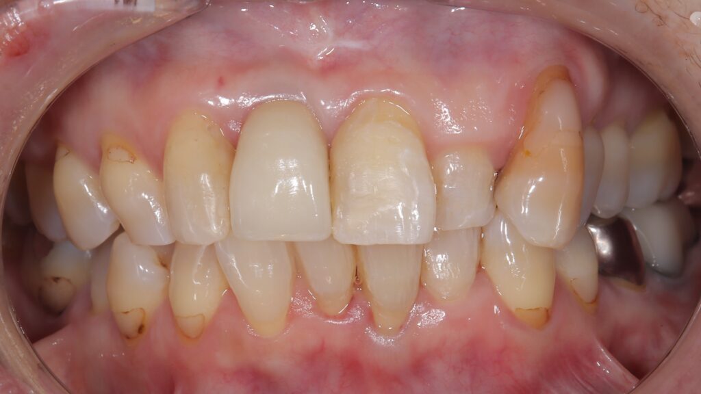 治療前では歯がない部分は骨が減っており、歯茎も減ってる状態でしたので、骨と歯茎を再生しました。